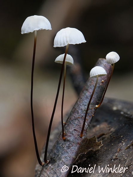 Marasmius candidus gills Mocoa